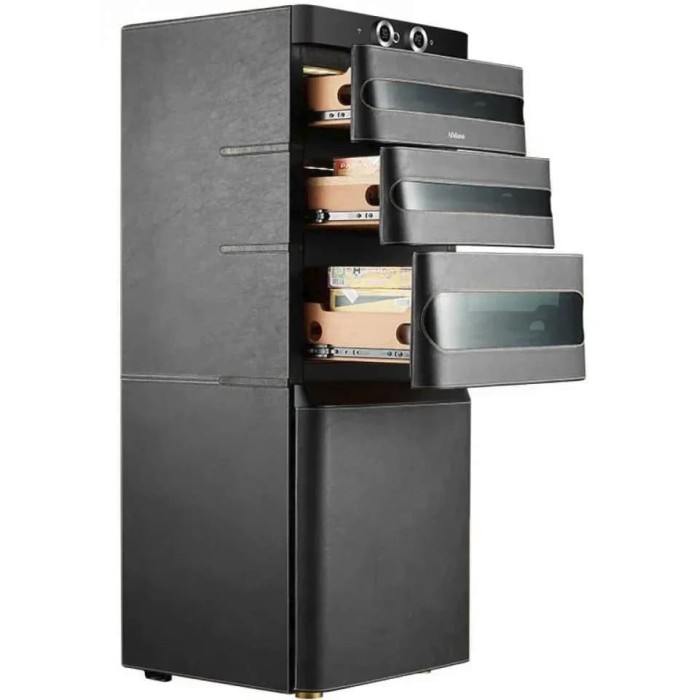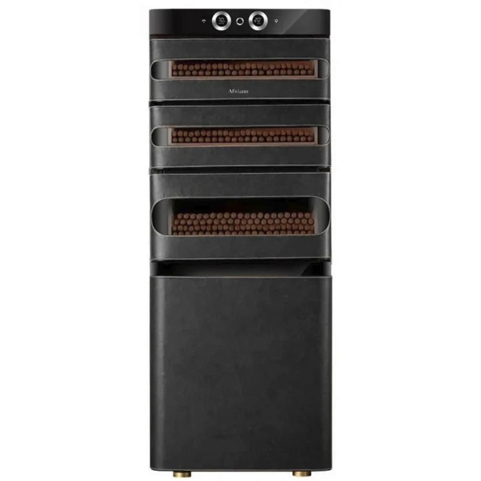 Управление параметрами шкафа Afidano (Афидано) L5 осуществляется быстро и бесшумно с помощью панели управления или мобильного приложения. Пять выдвижных ящика обеспечивают плавное скольжение, исключая зазоры и перекосы. Здесь удобно систематизировать сигары по формату, насыщенности или происхождению.