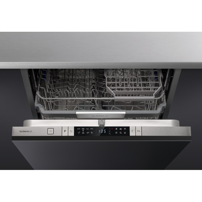 Встраиваемая посудомоечная машина De Dietrich DCJ422QSX обладает элегантным дизайном, который подходит к любому интерьеру. Вместимость составляет 14 комплектов посуды, благодаря чему она будет отличным выбором для большой семьи. Электронное управление и цифровой дисплей обеспечивают комфортное и понятное управление. Уровень шума составляет всего 42 дБ — устройство работает очень тихо.