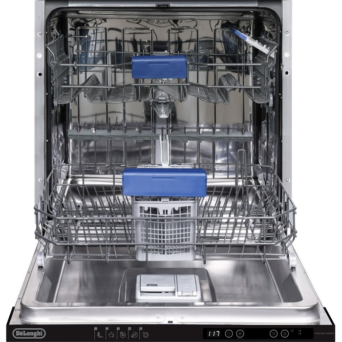 3) Компактность: ширина 60 см, вместимость 12 комплектов, две корзины+лоток для столовых приборов