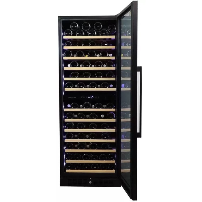 Винный холодильник Dunavox DX-108.330DB имеет две температурные зоны, в которых одновременно можно хранить разные сорта алкоголя и выставлять разные сочетания настроек. Он устанавливается отдельно, что удобно, если у вас есть специальное помещение — кладовая, погреб и т.д. Количество бутылок, которое можно разместить с учетом полной комплектации и из расчета объема бутылки 0,75 л, — 108 шт.