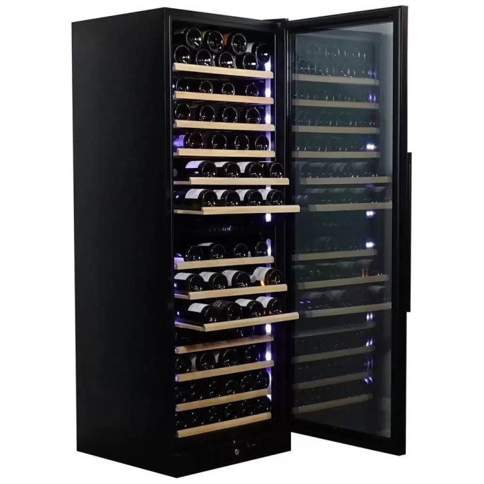 Электронное управление помогает быстро разобраться в том, как функционирует эта модель, и легко настроить все необходимые параметры. На дисплее отображаются данные, которые собирают датчики в камере. Всего полок, на которых можно разместить коллекцию, в шкафу 13 шт.