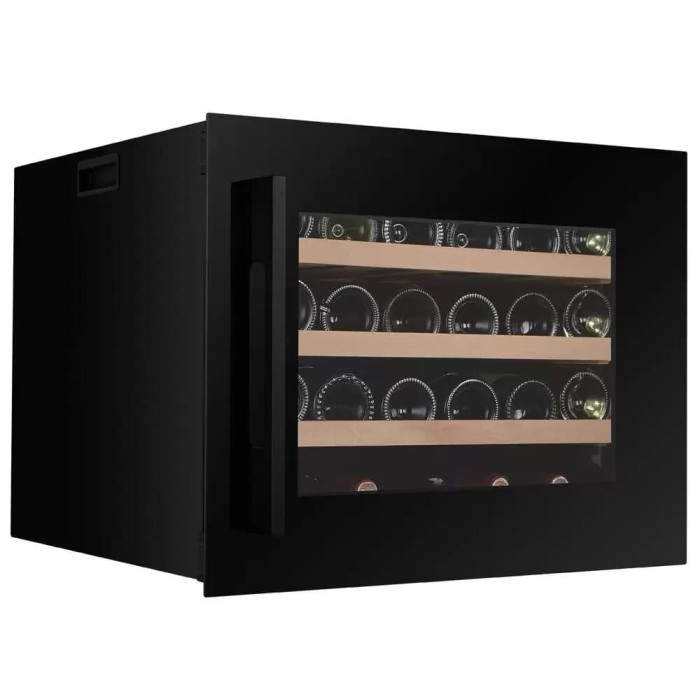 Винный холодильник Dunavox DXJ-24.51B имеет одну температурную зону, в которой можно разместить бутылки и единовременно выставить только одну комбинацию настроек. Он встраивается в нишу, что удобно, если у вас ограничен метраж помещения. Благодаря компактным размерам данная модель — отличный выбор для офиса, гостиничного номера. Количество бутылок, которое можно разместить с учетом полной комплектации и из расчета объема бутылки 0,75 л, — 24 шт.