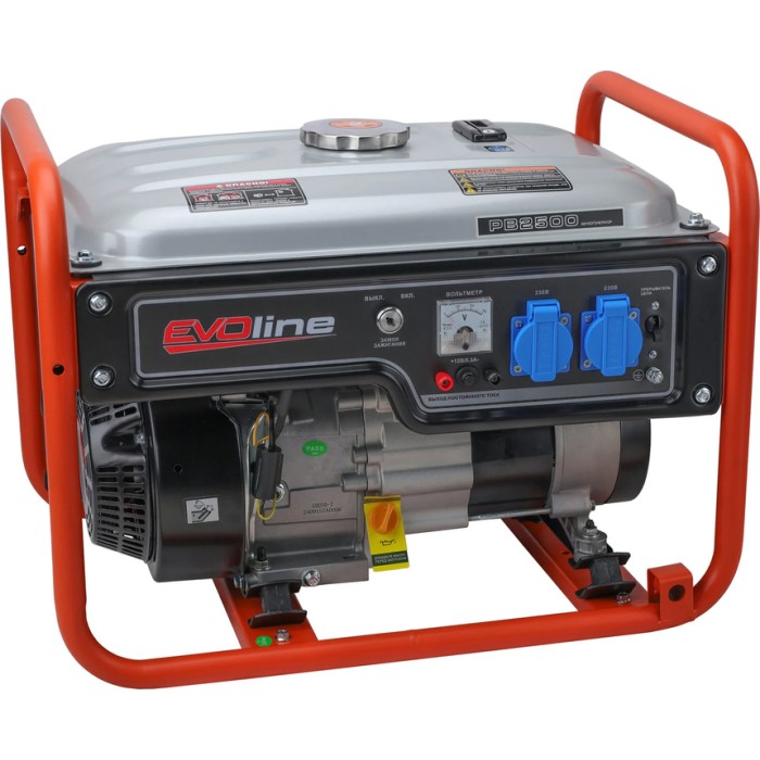 Универсальный генератор EVOline (ИВОлайн) PB 2500 выполнен в компактном форм-факторе на стальной раме. Регулятор напряжения AVR позволяет добиться стабильного показателя на выходе из устройства. Удачное сочетание бака и экономичного двигателя гарантирует долгий срок эксплуатации без дозаправки.