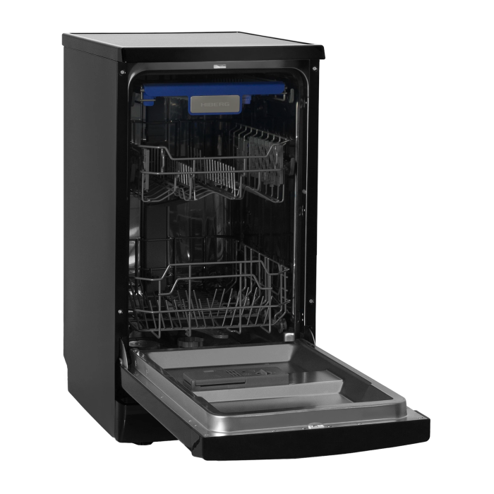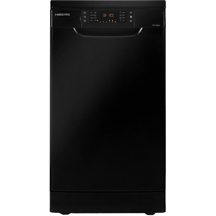 Узкая и отдельностоящая посудомоечная машина HIBERG F48 1030 W -оптимальный вариант для малогабаритных кухонь и ежедневного использования. Модель характеризуется высоким классом энергоэффективности А++, низким уровнем шума, вместительностью до 10 комплектов посуды и 8 автоматическими программами. Панель с дисплеем и электронным управление позволит легко выставить нужный режим. Световые индикаторы на информационной панели укажут на необходимость заполнения емкости ополаскивателя и контейнера с солью.