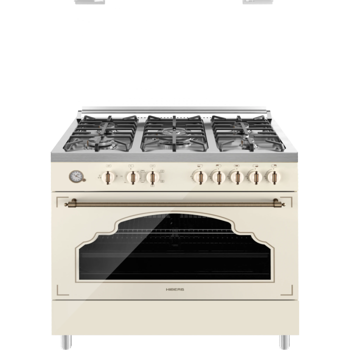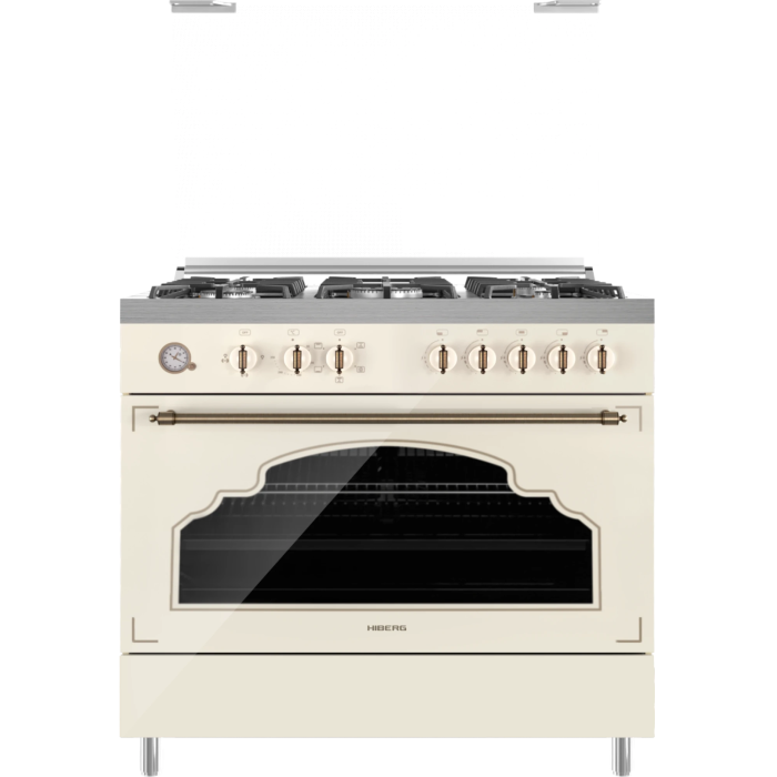 Широкая комбинированная плита HIBERG FEG 950-35 SY выполнена в ретро-стиле, обладает высокой технологичностью и функциональностью.