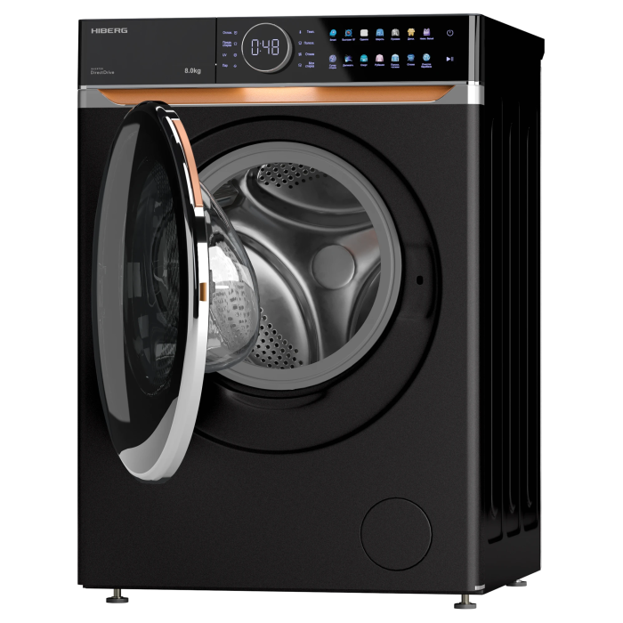 Стиральная машина HIBERG i-DDQ10 - 814 B с инверторным мотором и системой прямого привода отстирывает до 8 кг сухого белья за 1 цикл.