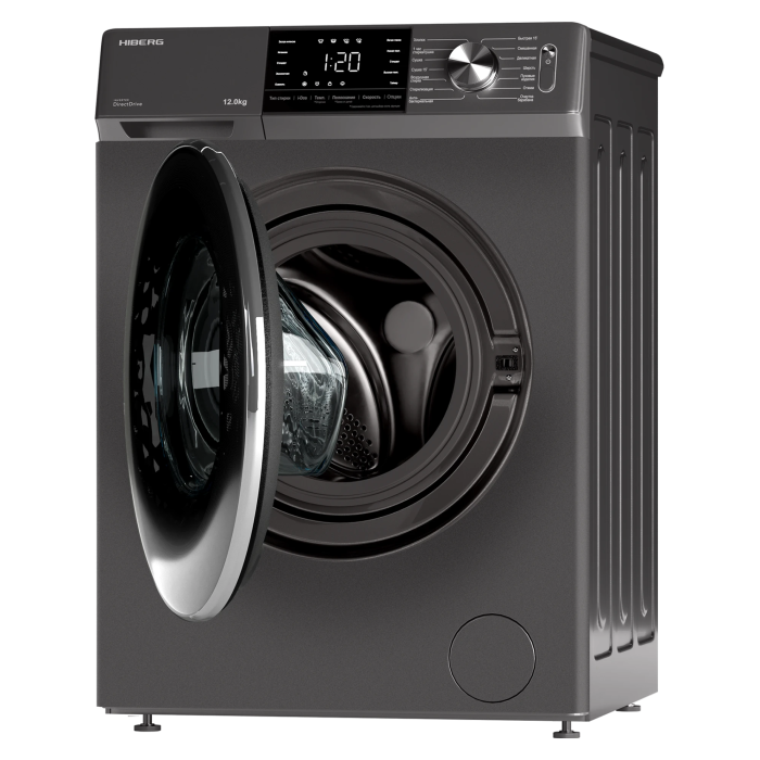 Отдельностоящая стиральная машина HIBERG i-DDQ6A - 1214 Sd с инверторным мотором и системой прямого привода отстирывает до 12 кг сухого белья за 1 цикл.