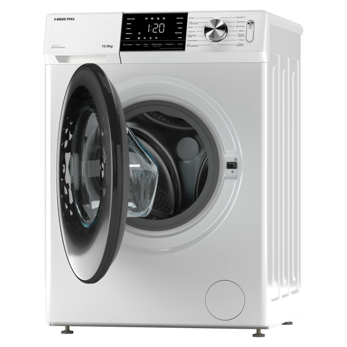 Отдельностоящая стиральная машина HIBERG i-DDQ6A - 1214 W с инверторным мотором и системой прямого привода отстирывает до 12 кг сухого белья за 1 цикл.