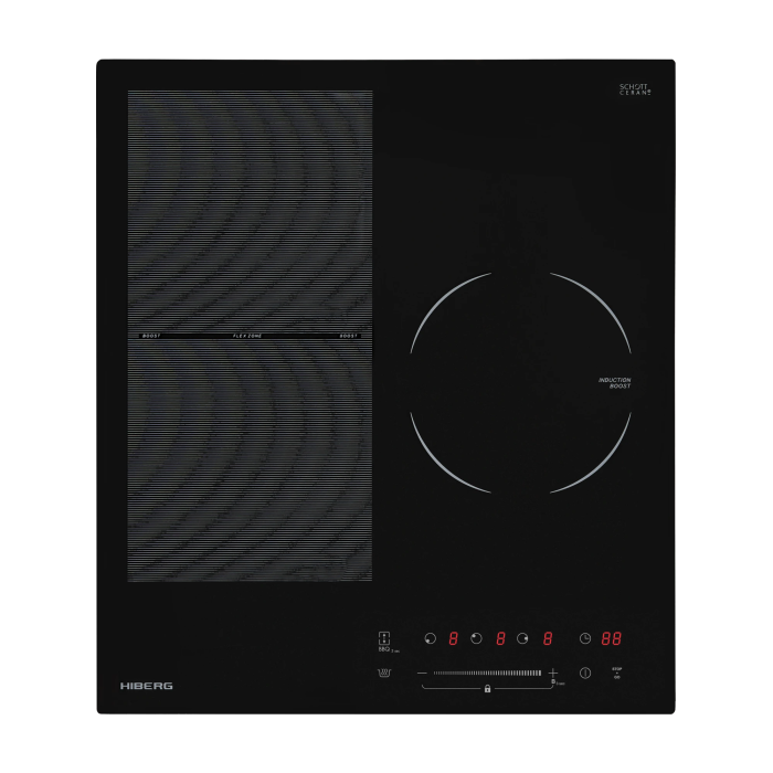 Встраиваемая индукционная варочная поверхность HIBERG i-MS 4539 B выполнена из немецкой стеклокерамики Schott ceran и оснащена 3 конфорками с сенсорным слайдерным управлением.