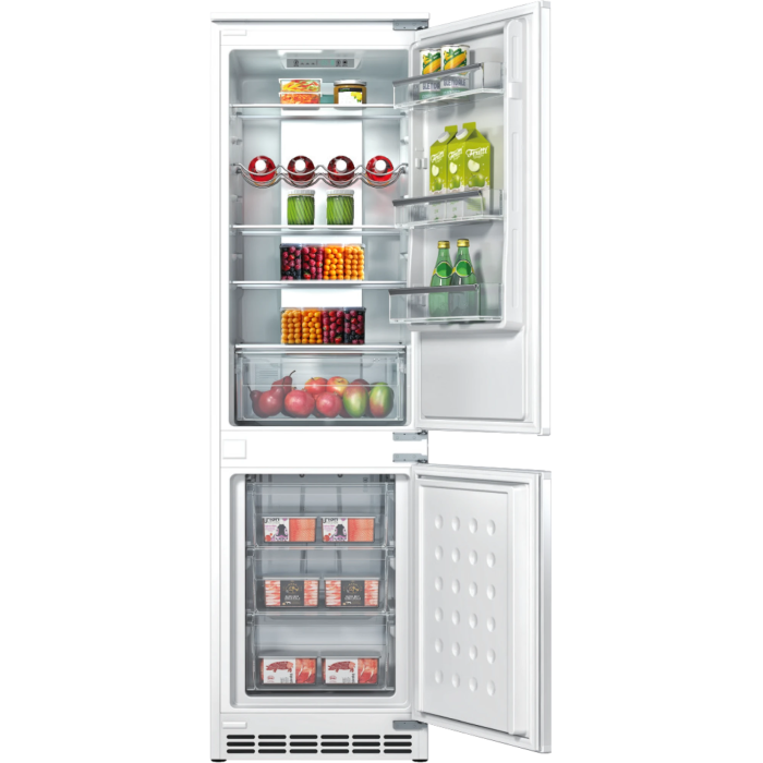 Встраиваемый холодильник HIBERG i-RFCB-400F NFW с инверторным компрессором, автоматической системой охлаждения Total No Frost и электронным управлением — идеальный выбор для встраивания в кухонный гарнитур и создания комфортного пространства на кухне. Двери холодильника можно повесить на правую или левую сторону. Это позволяет открывать их в удобном направлении и устанавливать технику в любом месте. Корпус, как и внутренняя часть модели стильного серого цвета.