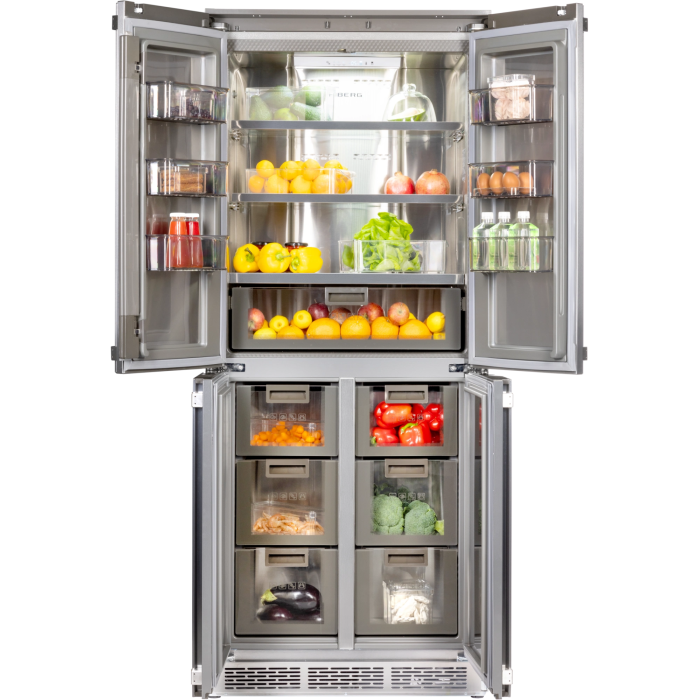 Благодаря уникальному дизайнерскому решению во внутренней эргономике устройства, вы получите настоящее эстетическое удовольствие от хранения продуктов – стенки камер и дверей выполнены полностью из нержавеющей стали, а все выдвижные ящики - из нержавеющей стали со стеклянными фасадами.