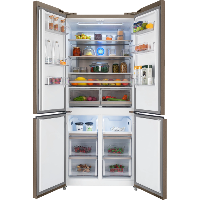 Четырехдверный холодильник HIBERG RFQ-600DX NFGY в эффектном цвете «бежевое стекло с полосками», со стеклянным фасадом и возможностью встраивания идеально впишется в кухонный гарнитур, создаст стильную и уютную атмосферу. Модель общим объемом 526 литров предназначена для хранения большого количества продуктов и напитков в частных и загородных домах, просторных квартирах и современных крупных офисах.