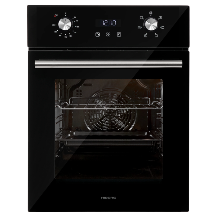 Встраиваемый духовой шкаф HIBERG VM 4260 B с общим объемом 50 л имеет 6 режимов приготовления, функцию конвекции, дисплей и электронное управление.