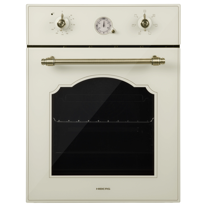 Выбор программы и настройка температуры осуществляется за счет механического управления. Расположенные на фронтальной части корпуса поворотные ручки регуляторов обеспечивают комфортную и точную настройку температуры и режимов готовки. Переключатели и ручка двери духового шкафа выполнены в винтажном стиле в цвете под латунь.