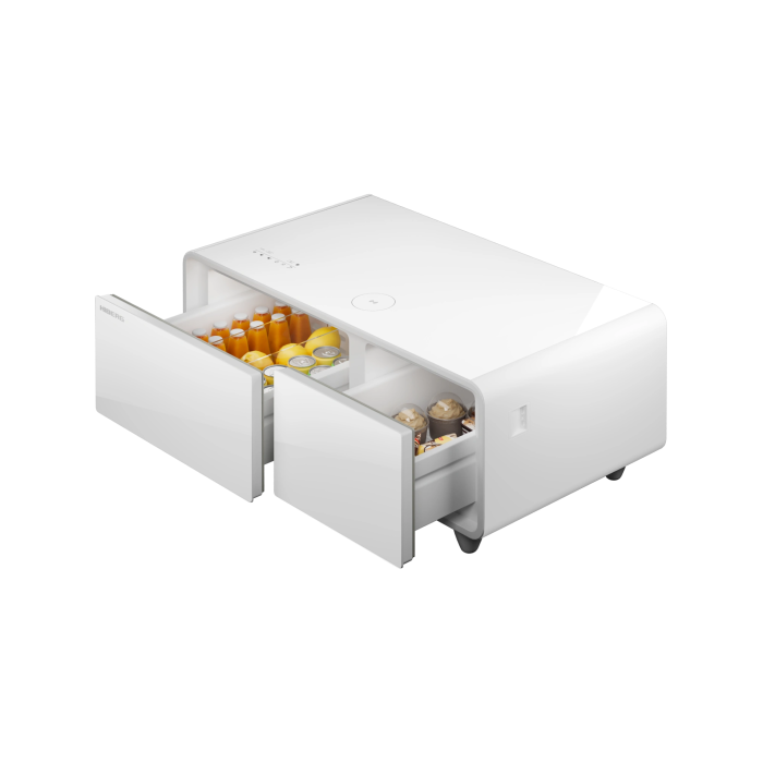 Это больше, чем просто журнальный стол: техника совмещает функции холодильника, морозильной камеры, музыкального центра, зарядной станции и источника питания для гаджетов.