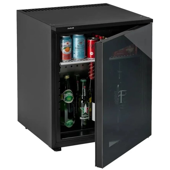 Minibar Indel B K60 EcoSmart PV RH Стильный компактный прибор, который привлекает внимание строгим черным фасадом со стеклянной облицовкой и скрытой ручкой, идеально вписывается в гостиничные номера, офисы и небольшие кухонные зоны. Небольшие габариты 57×50×50 см и чистые геометрические формы делают его удобным для встраивания и размещения в ограниченном пространстве, при этом внутренняя вместимость 60 литров позволяет хранить напитки, закуски и продукты для ежедневного использования. Корпус выполнен с продуманной эргономикой: дверной упор справа, но есть возможность перевешивания, что обеспечивает гибкость при монтаже и эксплуатации. Внутри установлена LED-подсветка, которая равномерно освещает камеру и облегчает поиск нужных предметов, а две алюминиевые полки с возможностью регулировки высоты дают свободу компоновки согласно объему содержимого. Управление механическое и простое: регулируемый термостат позволяет устанавливать температуру в диапазоне +2...+8°С, обеспечивая оптимальные условия хранения напитков и скоропортящихся продуктов, а статическая система охлаждения и один компрессор гарантируют стабильную работу при умеренном энергопотреблении. Модель отличается автоматическим размораживанием холодильной камеры, что минимизирует необходимость ручного ухода и сохраняет внутренние поверхности в чистоте. Хладагент R600a обеспечивает эффективное охлаждение с низким воздействием на окружающую среду, а входная мощность 58 Вт и возможность работы от сетей 115 или 230 В делают прибор универсальным для разных условий эксплуатации. Уровень шума 36 дБ обеспечивает тихую работу, не отвлекая в номере или офисе. Класс энергопотребления F и среднесуточное потребление 0.271 кВт подчеркивают экономичность в рамках своего сегмента. Вес устройства 25.5 кг (нетто) и упаковочные размеры 63×56×56 см с брутто 27.7 кг упрощают транспортировку и монтаж. Фронт из стекла придает современный вид и визуально увеличивает пространство, а сочетание металлических элементов и строгого цветового решения делает внешний облик универсальным и презентабельным. Благодаря скрытой рукояти дверь сохраняет гладкий профиль, что важно при размещении в общественных интерьерах. Конструкция камеры подразумевает одно отделение и одну дверь, что повышает надежность и снижает вероятность поломок, а простота обслуживания делает эксплуатацию удобной для персонала. Этот прибор комбинирует компактные размеры, функциональность и аккуратное оформление, предлагая готовое решение для тех, кто ищет баланс между эстетикой и практичностью в условиях ограниченного пространства.