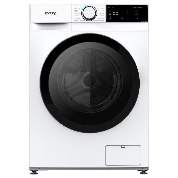 Электронное управление дополнено чётким LED-дисплеем с белой подсветкой, отображающим этапы программы, настройки и оставшееся время. В арсенале — 16 программ: хлопок, синтетика, смесовые ткани, шерсть, джинсы, детские вещи, одеяла, повседневная стирка, ECO-режим, а также специализированные циклы — экспресс за 15 минут, стирка с паром и уникальный режим «стирка + сушка за 1 час». Можно выбрать скорость отжима, отложить запуск на 24 часа, активировать автоочистку барабана или воспользоваться функцией запоминания любимых программ. Сушка доступна как по времени, так и по уровню остаточной влажности — для хлопка, синтетики и смешанных тканей.
