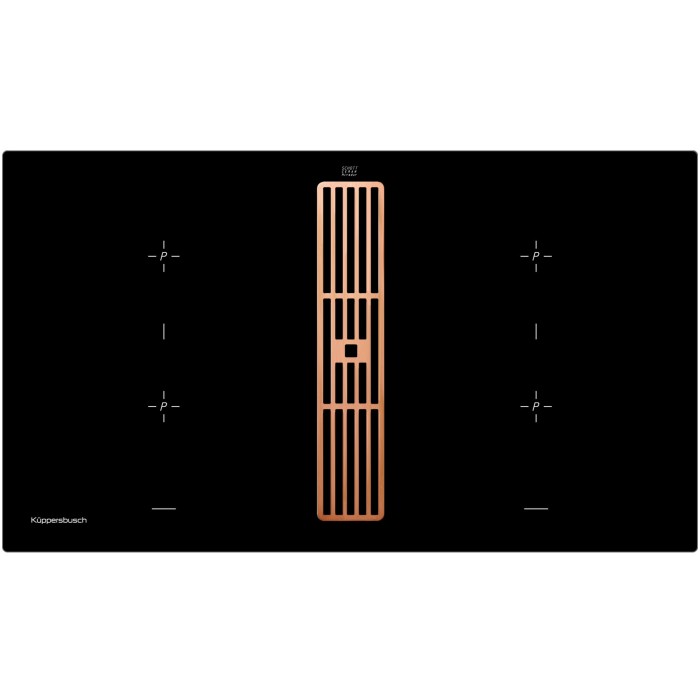 Индукционная варочная панель с вытяжкой Kuppersbusch KMI 9850.0 SR Copper - это высококачественное устройство, произведенное в Германии. Это устройство сочетает в себе инновационные технологии и стильный дизайн, обеспечивая высокую производительность и комфорт в использовании. Панель выполнена в черном цвете и имеет стеклокерамическую поверхность, что придает ей элегантный и современный вид. Одной из особенностей данной модели является наличие встроенной вытяжки, которая обеспечивает быстрое и эффективное удаление запахов и пара во время приготовления пищи. Электронное управление с поворотными переключателями, что делает ее использование удобным и простым.