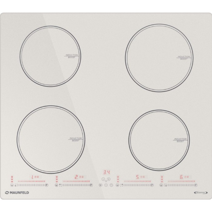 На панели расположены 4 индукционные конфорки различного диаметра: две 180 мм и две 160 мм. Это позволяет готовить различные блюда одновременно, экономя время и энергию. Мощность каждой конфорки варьируется от 1200 до 2300 Вт, что обеспечивает быстрый и равномерный нагрев. Максимальная потребляемая мощность электрических конфорок составляет 7000 Вт.