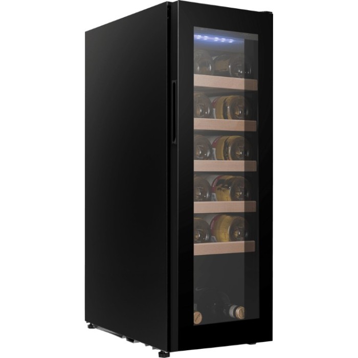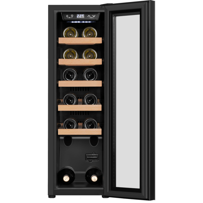 Особенностью данного винного шкафа является его вместительность. Полезный объем составляет 45 литров, что позволяет хранить в нем до 12 бутылок вина. Для удобства использования предусмотрено 5 полок из высококачественного бука. Каждая полка имеет достаточные размеры для размещения бутылок различных форматов.