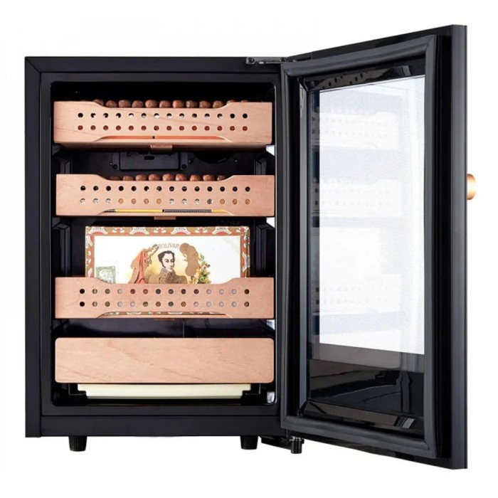 Хьюмидор Meyvel MC-50BK Pro представляет собой элегантное сочетание строгой геометрии и продуманной функциональности: в компактном корпусе высотой 62.5 см, шириной 44.5 см и глубиной 51.2 см разместился идеальный микроклимат для хранения до 500 сигар при общем объеме 50 литров, что делает прибор оптимальным решением для дома, кабинета или специализированной витрины. Матовое черное покрытие подчеркивает сдержанную эстетику, а аккуратно интегрированное внутреннее освещение и демонстрационная подсветка выгодно выделяют содержимое при каждом открытии дверцы — при этом долговечные деревянные кедровые ящики обеспечивают правильное распределение ароматов и защиту от посторонних запахов. Управление реализовано через сенсорную панель с возможностью блокировки для предотвращения случайных изменений и памятью настроек, а электронный термостат и цифровой гигрометр гарантируют стабильность параметров: диапазон влажности 60-75% и температурный интервал 16-22 °C поддерживаются благодаря компрессорной системе охлаждения с динамическим распределением холода, угольному фильтру и активному контролю влаги. Для удобства предусмотрен резервуар для воды с сигнализацией уровня, а также звуковые оповещения о отклонении температуры и влажности — такие механизмы быстро предупреждают о необходимости вмешательства и помогают сохранить коллекцию в идеальном состоянии. Однозонная конфигурация с тремя полками упрощает организацию места, а антивибрационные решения и регулировка ножек повышают устойчивость и уменьшают влияние внешних факторов; при этом блокировка панели управления и встроенный замок добавляют уровня безопасности, защищая содержимое от посторонних. Среди дополнительных опций — функция открытия отпечатком пальца, обеспечивающая быстрый доступ владельцу, и демонстрационное освещение, которое выгодно подчеркивает эстетическую ценность набора. Климатический класс N-SN-T-ST расширяет возможности эксплуатации в различных условиях, а компактные габариты делают изделие отдельностоящим и удобным для размещения в ограниченном пространстве. Конструкция ориентирована на длительное хранение: электронная система контроля с функцией запоминания настроек позволяет возобновить оптимальные параметры после отключений, а угольный фильтр вместе с кедровыми ящиками создают естественную, стабильную среду для медленного созревания и сохранения вкуса. Этот девайс сочетает в себе современные технологии и традиционные решения хранения табачных изделий, предлагая аккуратный внешний вид, широкий набор защитных функций и удобные элементы управления, которые подойдут как коллекционерам, так и тем, кто ценит порядок и стабильность микроклимата для своей коллекции.
