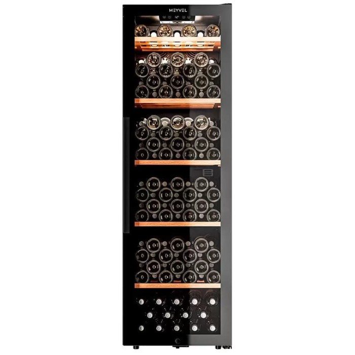 Винный шкаф Meyvel MV133 KBF1 выполнен в строгом черном корпусе и