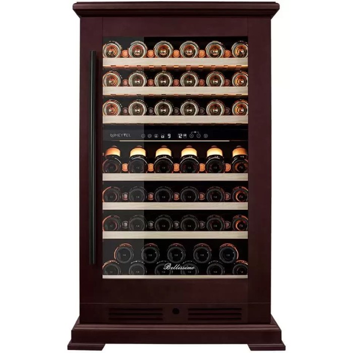 Сенсорное управление и цифровой дисплей упрощают настройку параметров, а функция памяти сохраняет предпочтительные значения после отключений питания. Наличие индикации повышения температуры и предупреждения при открытой дверце обеспечивает дополнительный контроль за состоянием коллекции. Удобные выкатные полки и отдельная полка для нестандартных бутылок ускоряют подбор нужной позиции и облегчают реставрацию выкладки. Угольный фильтр нейтрализует посторонние запахи, а один компрессор и автоматическая система размораживания минимизируют обслуживание.