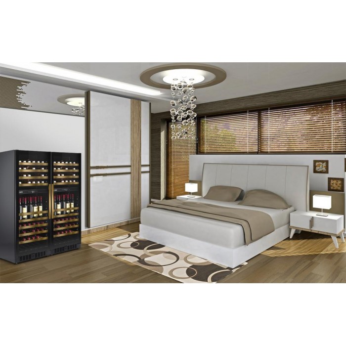 Две камеры в технике такого типа встречаются реже, чем в обычных холодильниках, эти приборы чаще всего предназначены для ресторанов или крупных коллекционеров. Охлажденный воздух поступает внутрь благодаря компрессору. Общий диапазон температур, которые можно установить: 5-20 градусов. Средняя влажность воздуха (в процентах), которая поддерживается, чтобы пробки в бутылках не пересыхали: 50-80.