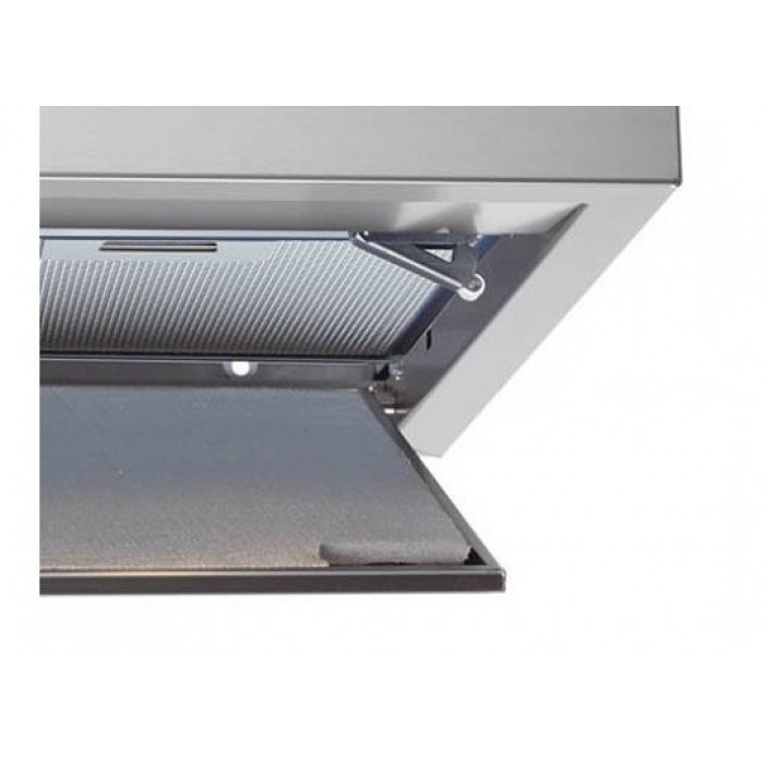 Вытяжка работает в режимах отвода и циркуляции, поэтому загрязнения удаляются из комнаты и перенаправляются в воздуховод, при этом можно очистить воздух и использовать повторно за счет возвращения его в помещение. Количество скоростей в этой модели: 4 шт. При этом максимальная производительность составляет 800 куб.м./ч. Уровень шума при полной загруженности — 64 дБ.